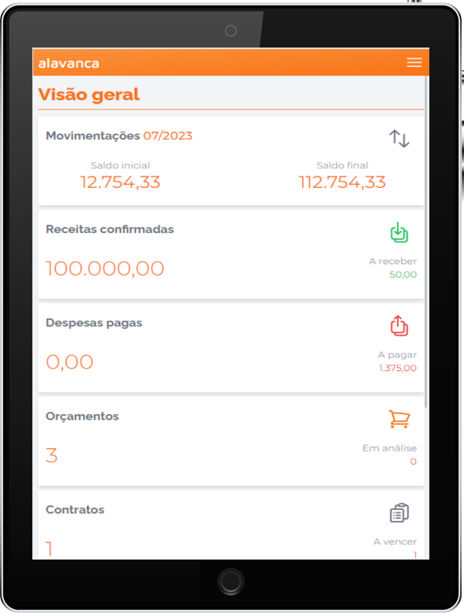 Tenha acesso a um painel de controle e acompanhe em tempo real a sua situação financeira.